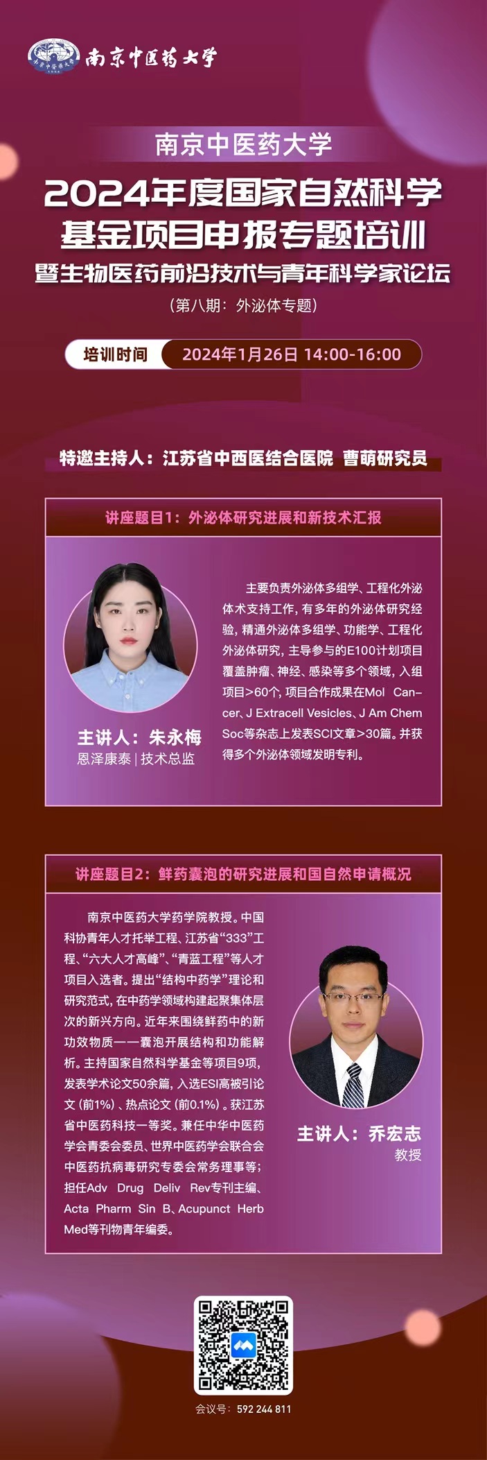 2024年度国家自然科学基金项目申报专题培训暨生物医药前沿技术与青年科学家论坛