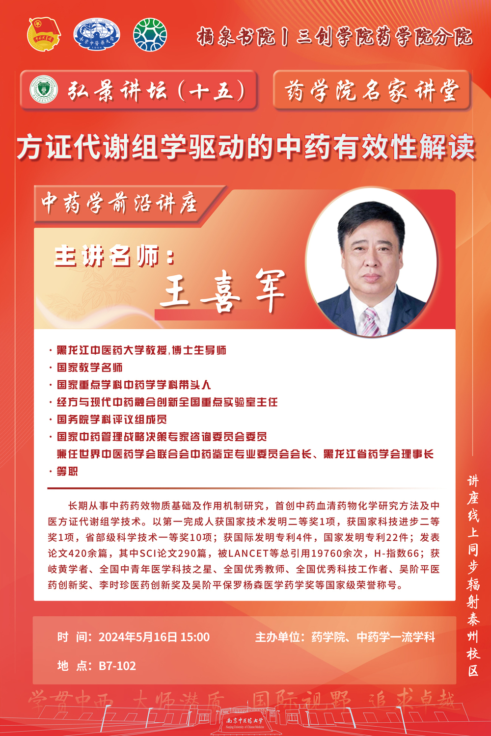 药学院名家讲堂系列讲座:方证代谢组学驱动的中药有效性解读