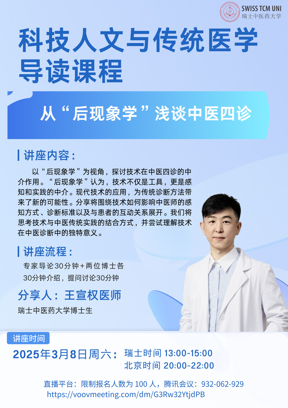 主讲人:王宣权医师,瑞士中医药大学博士生