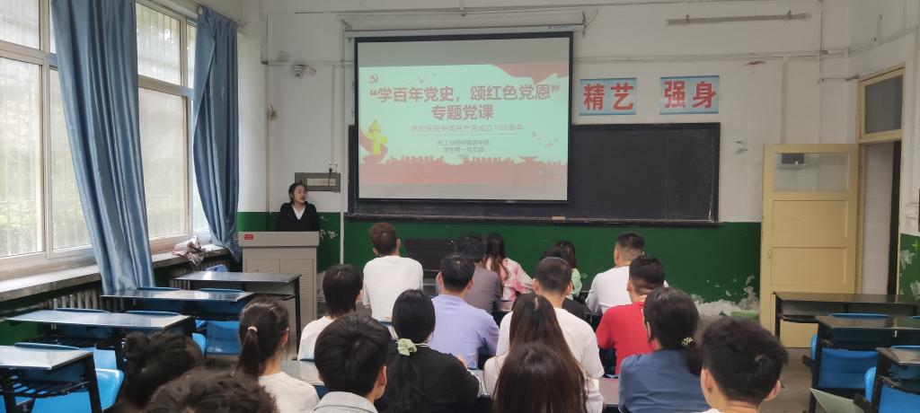 为深入开展党史学习教育,重温中国共产党一百载光辉历史,6月17日下午,化纺服学院学生第一党支部书记闫琼在笃学楼108教室为学生党员讲授“学百年党史,颂红色党恩”专题党课。