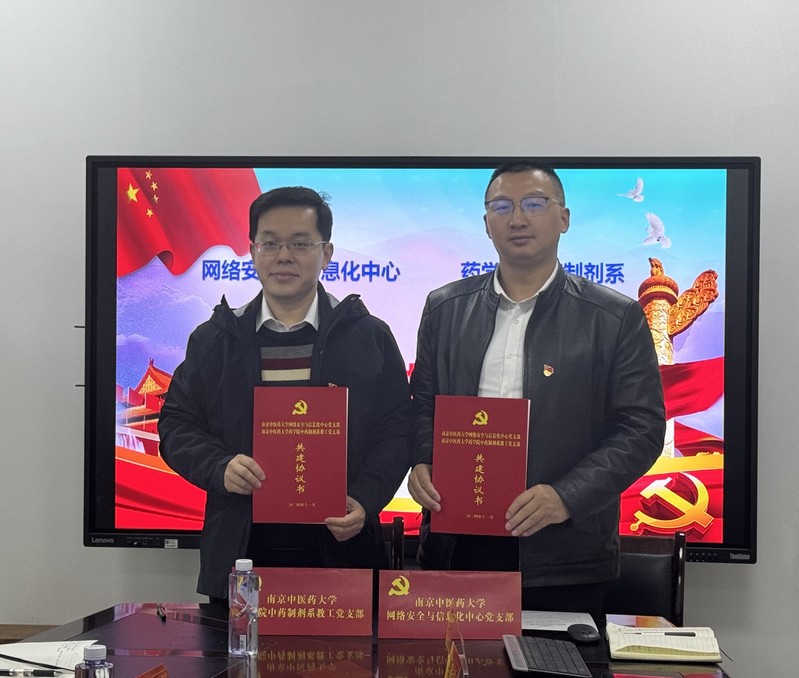 为进一步加强基层党组织建设和工作作风建设,深化“管理育人、服务育人”工作,11月26日,网络安全与信息化中心党支部(以下称“网信中心党支部”)和药学院中药制剂系教工党支部在敬文图书馆112会议室举行党建共建签约仪式。网信中心主任、党支部书记刘建峰,药学院党委书记曹凯,药学院中药制剂系教工党支部书记乔宏志以及部分党员代表出席签约仪式。仪式由网信中心副主任、党支部副书记张同远主持。刘建峰和乔宏志代表双方党支部签署共建协议。